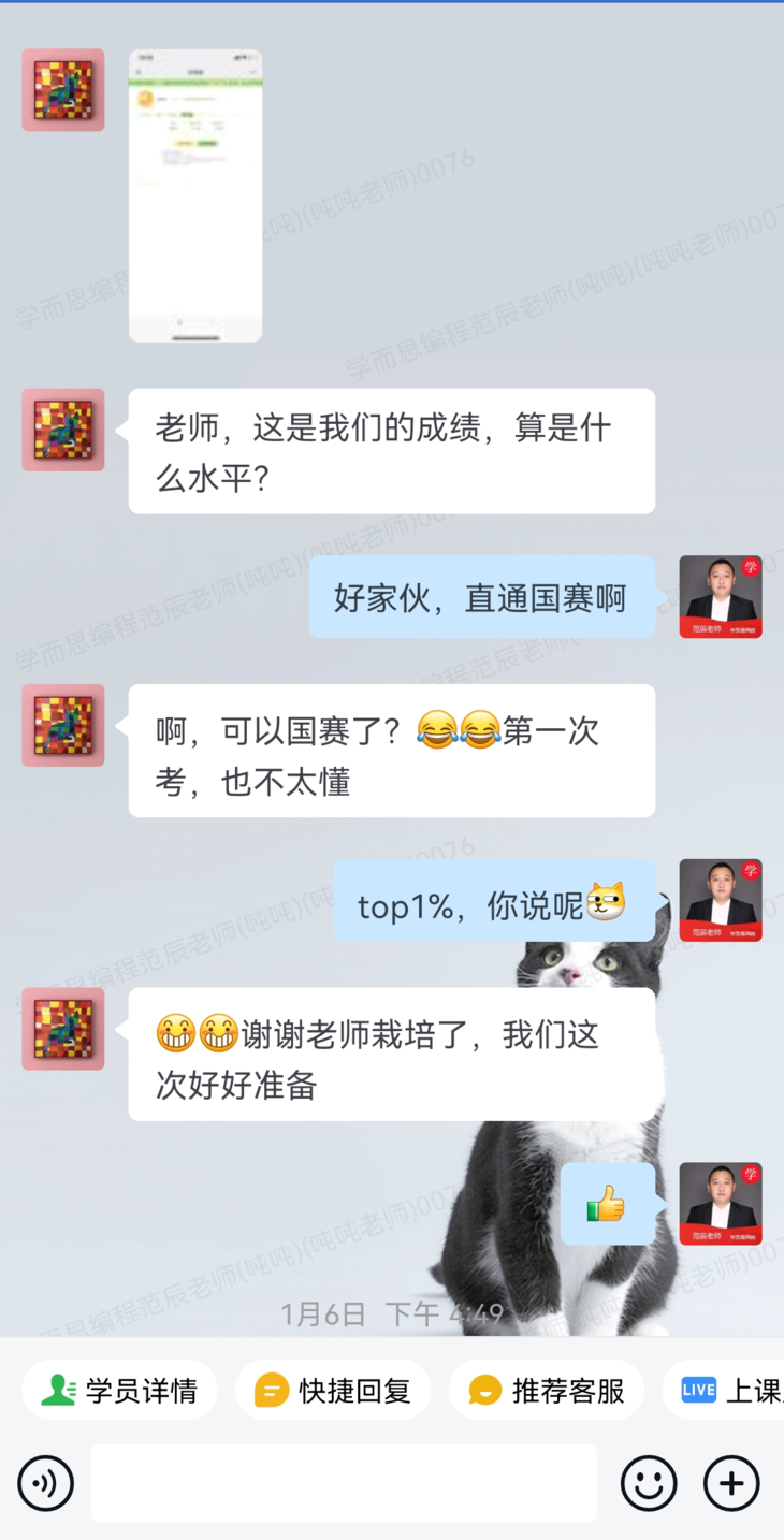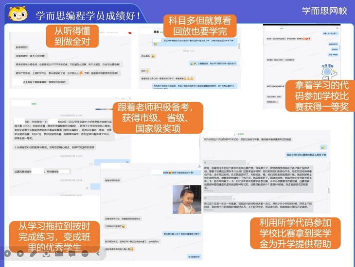 每次赛事考级之后,家长也会和班主任分享得奖的喜悦,直通国赛的喜报,学而思的班主任也是发到手软