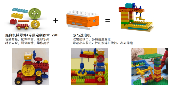 整套课程,搭配500+积木,可以实现多种造型拼搭
