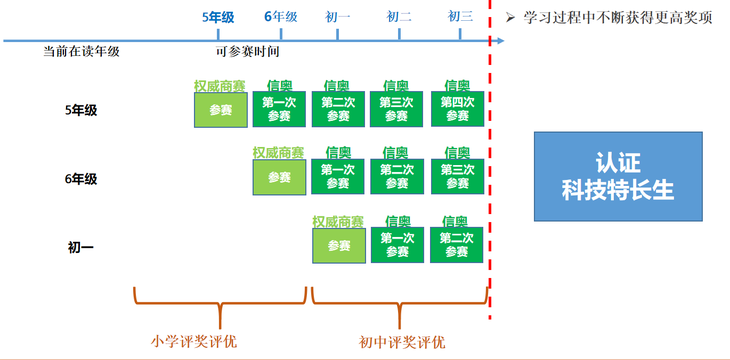在 “五大学科竞赛”(数学、物理、化学、生物、信息学)中,信奥是唯一一个可以贯穿小学、初中、高中全程,而其他四门只有到高中才能参加
