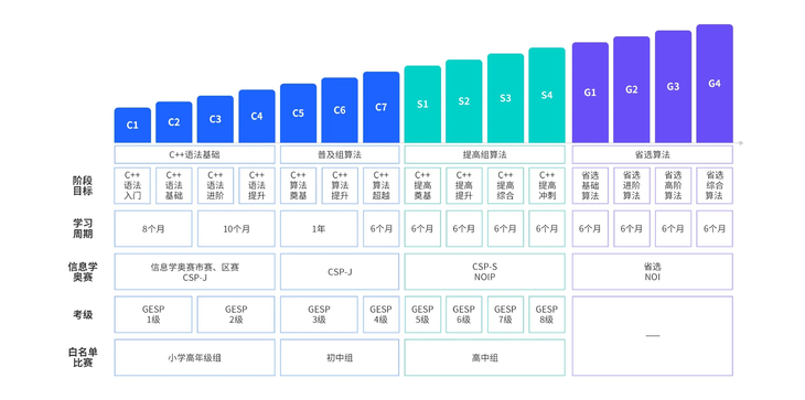 相对于其他机构敷衍甚至于没有C++的课程体系,学而思直接分为了三个大阶段学习C++