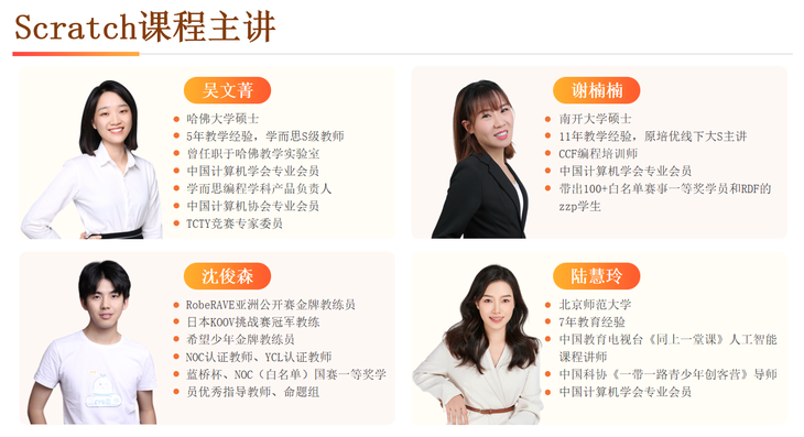 Scratch的老师,南开、哈佛、北师大,全员大赛指导教师级别,参赛无忧
