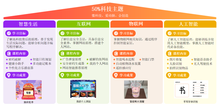 先看50%的科技主题,响应中小学新课标要求,从智慧生活到物联网人工智能,让孩子紧跟时代潮流,在同龄人中脱颖而出