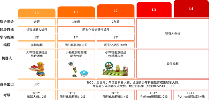 L0~L2是软硬结合,到了L3就可以根据孩子的编程天赋,选择衔接机器人编程或者软件编程