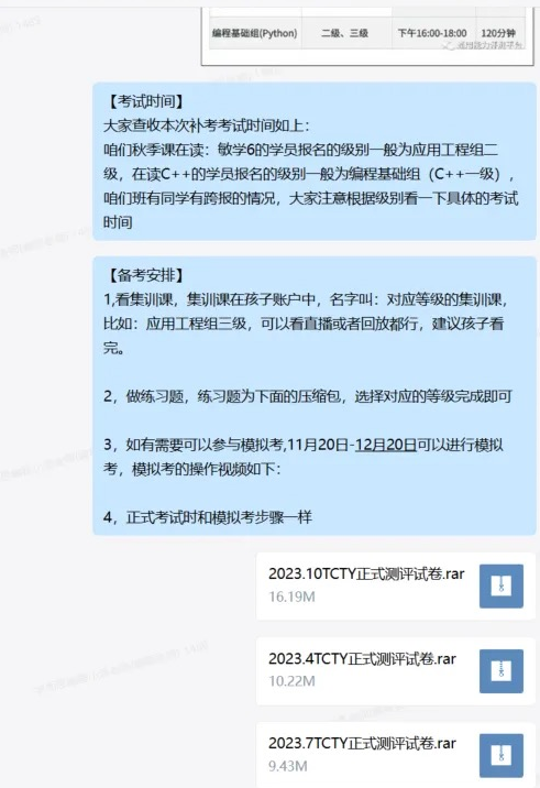 报名阶段会清晰地说明白时间、考试安排,也会给到对应的测评真题,帮助孩子进行模拟考试