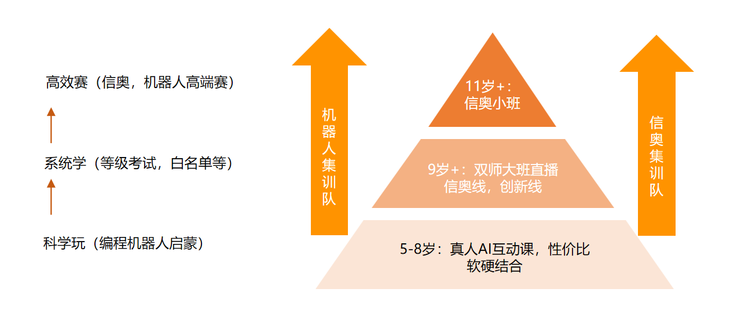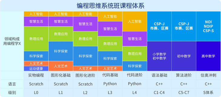 再来讲讲第二个点,学而思编程新增了大班课程后,从编程启蒙到最终高中的信奥赛,都能为孩子一站式服务到位