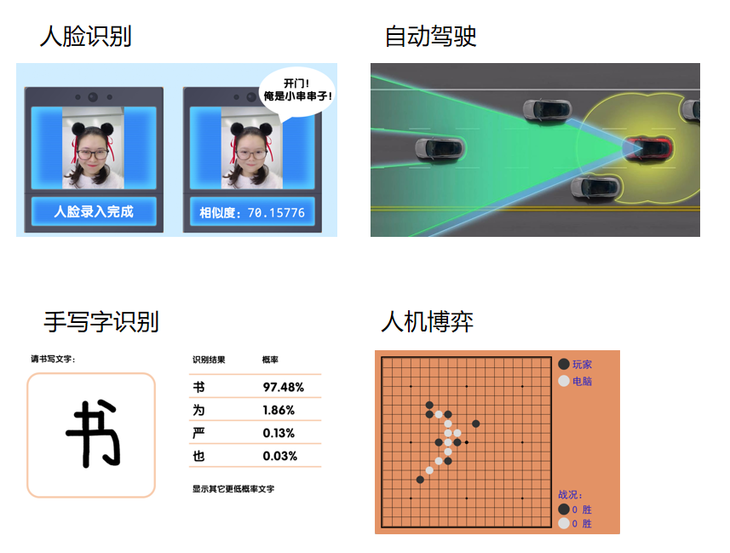 人脸识别、自动驾驶、手写字识别、人机博弈,孩子不仅能做出作品,更能理解背后的原理,掌握新时代的底层逻辑,成为人工智能的主人