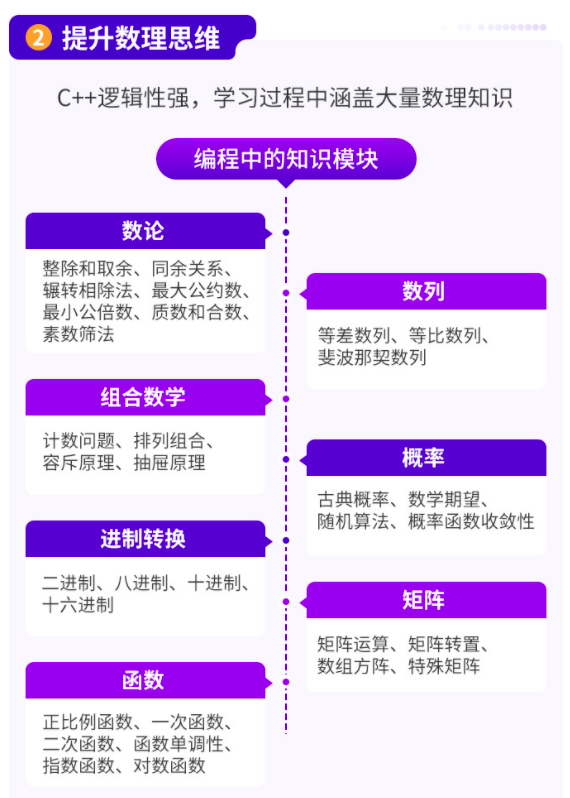 在C++的课程中,数论、数列、进制转化、矩阵,孩子全都能掌握