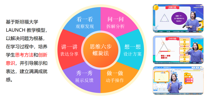 整体学习过程遵循思维六步学习法,从生活中发现问题,一步一步解决并将过程表达出来,又锻炼思维,又锻炼表达,还能强化创新能力,一箭三雕