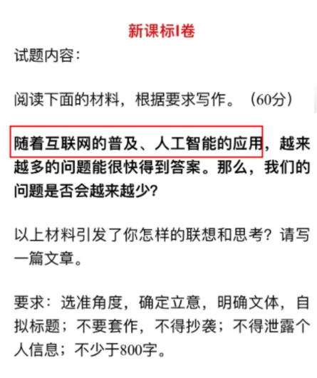 例如今年高考的语文作文,就提到了人工智能的主题,孩子没有接触、实际使用过人工智能,很难写出一篇高分作文