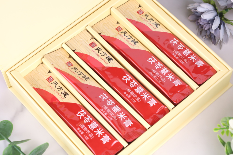 因此,在“四神汤”的基础上,天方健推出了「茯苓薏米膏」,添加了两味好药食:芡实与橘皮(陈皮)。