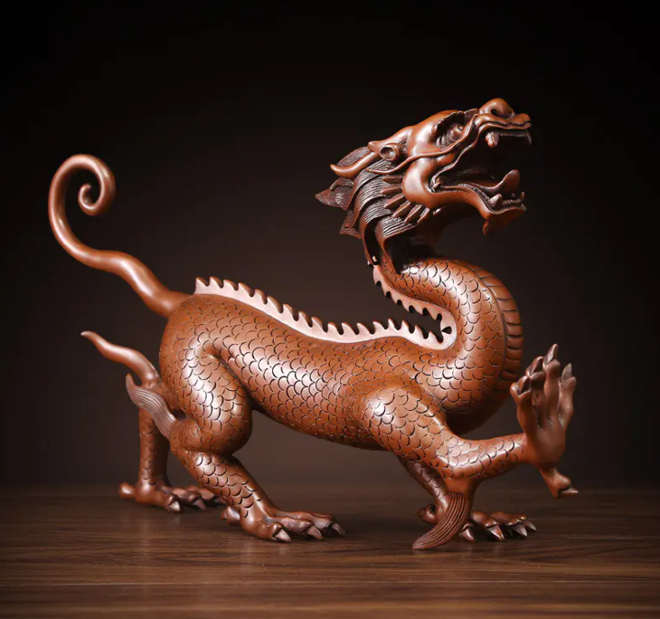 龙为古代帝王权威的象征,可加强个人权威。在家中或办公场所的合适位置放青龙摆件,则具有提升活力,开拓事业,增强贵人运的寓意。除此之外,放青龙摆件还有除小人、避是非的意义。如果家中男丁稀少、女性多时,造成阴盛阳衰,或者家宅阴气重时,也可在青龙方放置青龙摆件。