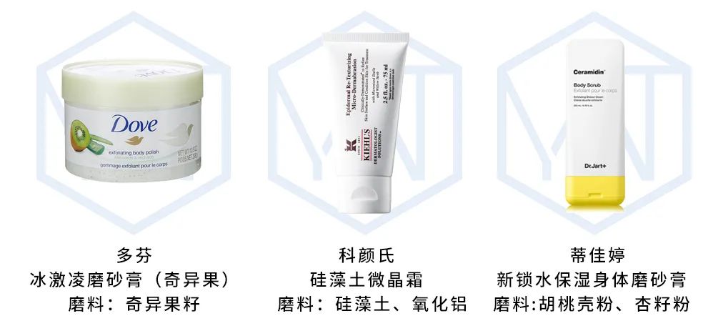 现在市面上有很多去角质的产品,都是通过添加磨料(尼龙、硅石、杏籽粉等)物理刮擦来达到去除角质的目的。
