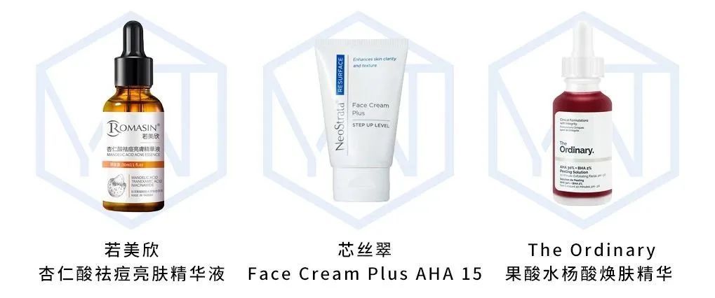 市场上有很多的功效产品,也具有促进新陈代谢的作用,有些人会喜欢追求“速度快”、“高浓度”的产品,但其去角质能力比较强,不建议自己盲目操作哦~