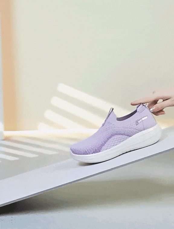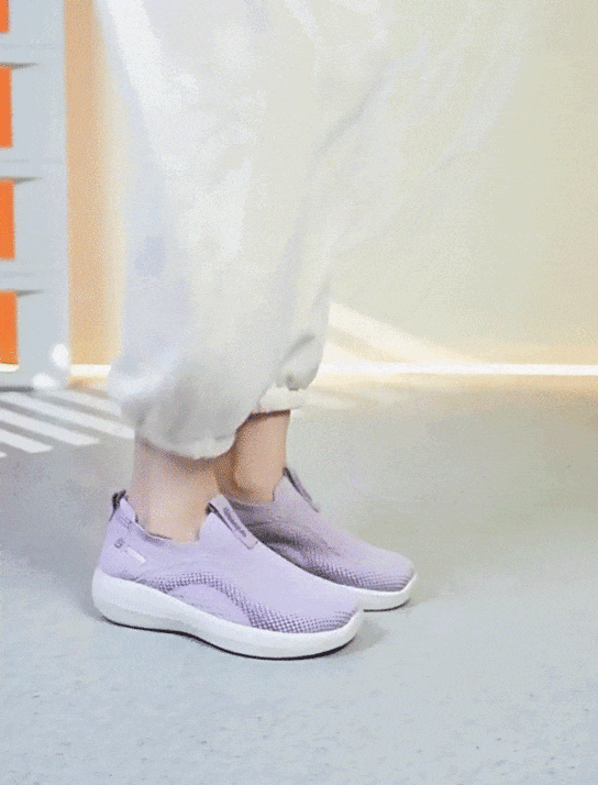 而咱们这款笙观相沐飞织鞋,采用的是懒人一脚蹬设计,免系带、免弯腰,不用手拽,不用坐着穿,一秒钟就能轻松穿脱
