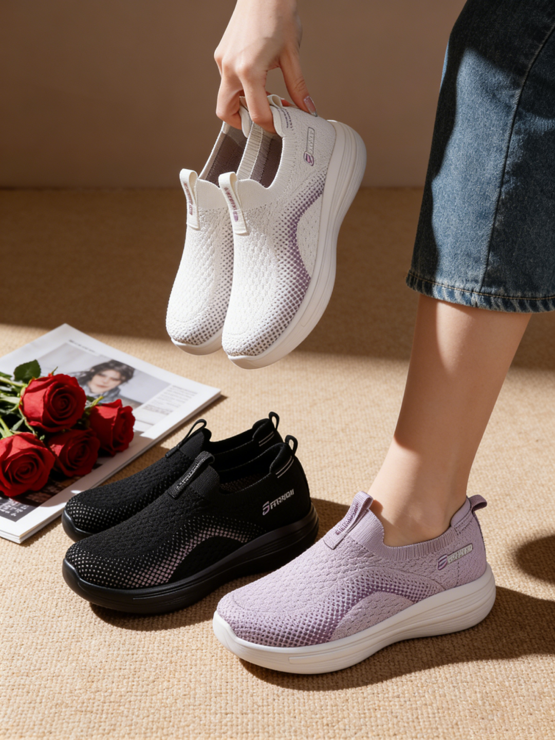 传统鞋子,要么鞋底硬得像石板,走两步脚底板就疼;要么鞋面不透气,穿一天脚像泡在水里