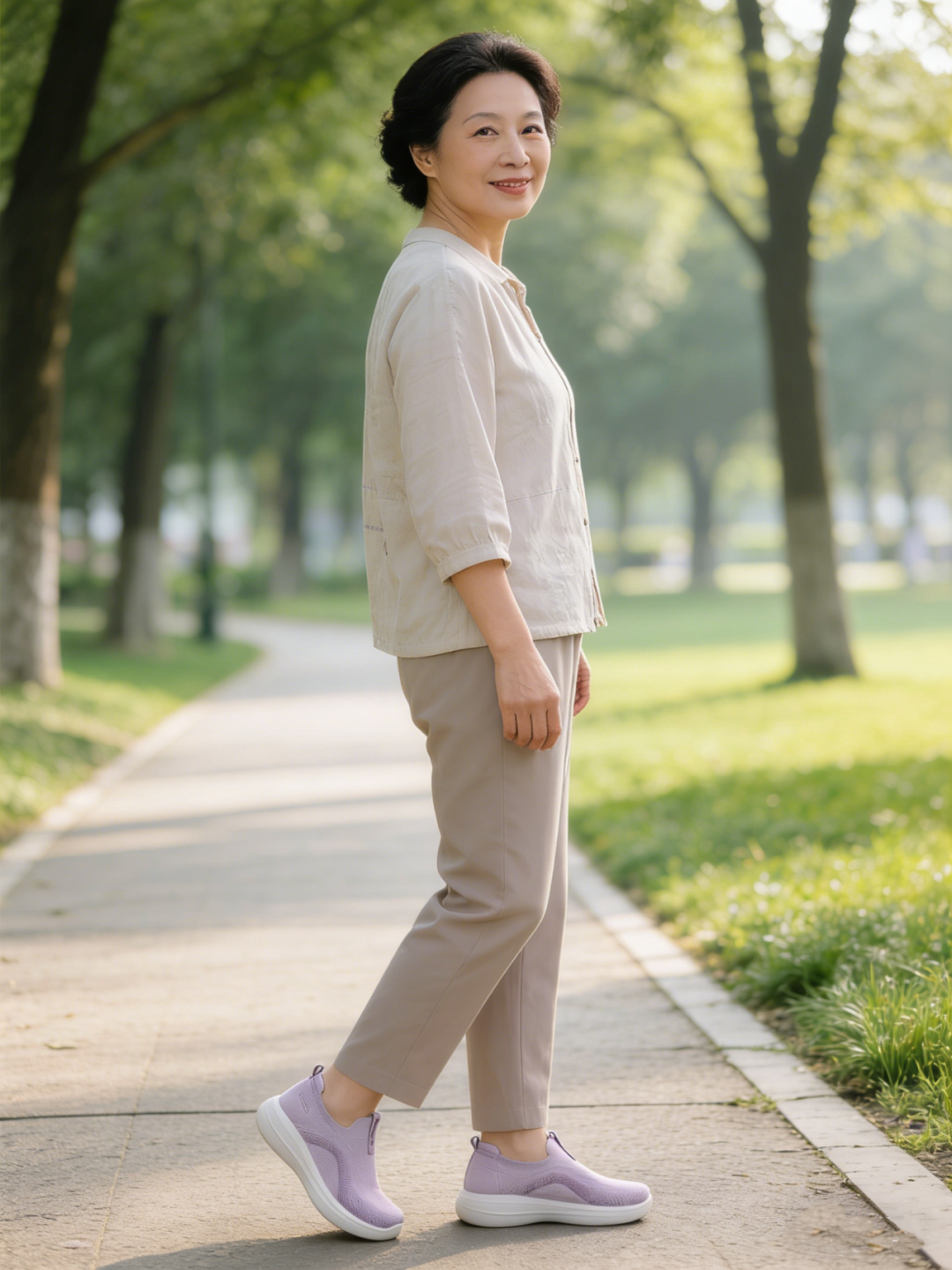 哪怕是跳广场舞转身、石子路徒步,都能稳稳抓地,迈步更稳健,帮你在一定程度上杜绝打滑摔倒的风险。