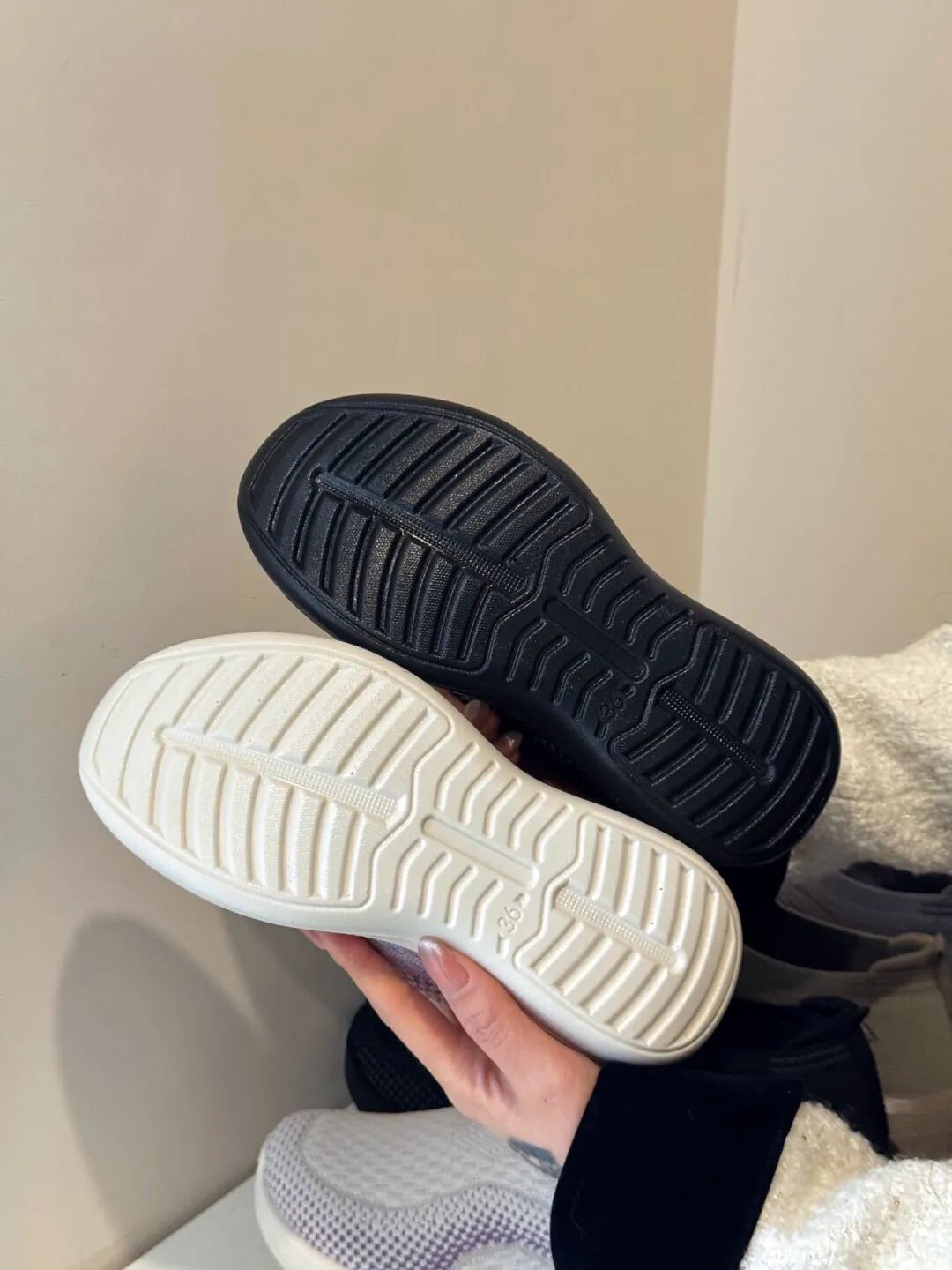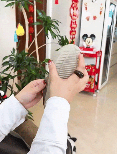 而且这样的一脚蹬设计,穿脱特别方便,出门一蹬就穿上,回家一踩就脱掉,完全不用弯腰!