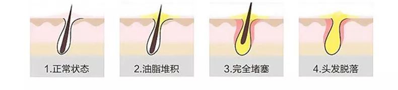 之前说到,脱发是因为油脂分泌旺盛,毛囊被堵塞,头部血液循环变慢,头发易油腻。如果不认真做好清洁工作,不堪重负的毛囊失去活性,想再长出头发就困难了!