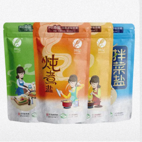 他家代表性的产品有:食用精制盐、海水自然晶盐、海水低钠盐、炒菜盐、拌菜盐、炖煮盐、煲汤盐、腌制海盐……精心保留了海水中钙、镁、钾等对人体的有益元素。