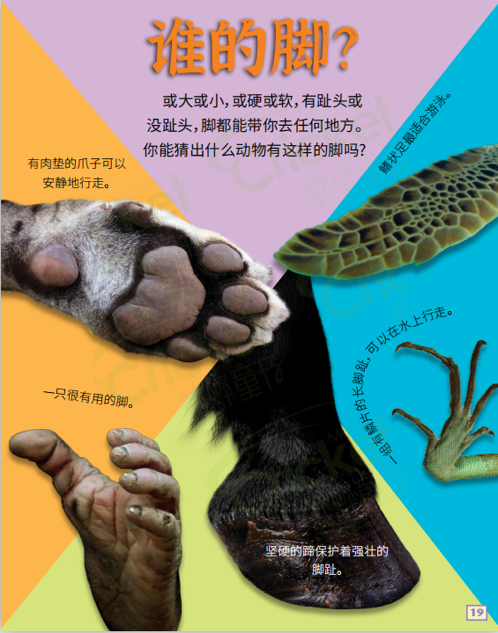接下来3篇短文分别讨论:不同动物的尾巴具有不同功能;不同动物脚的结构是与功能相适应的;壁虎能爬墙和断尾的秘密。