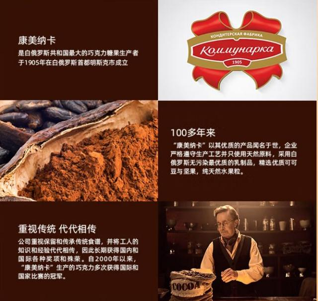 康美纳卡是1905年成立于白俄罗斯首都明斯克的巧克力糖果生产商,实打实的百年老字号企业。