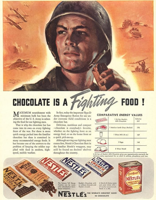 二战中,无论美军还是德军,都将巧克力作为重要的军用食品分发给士兵。