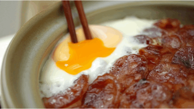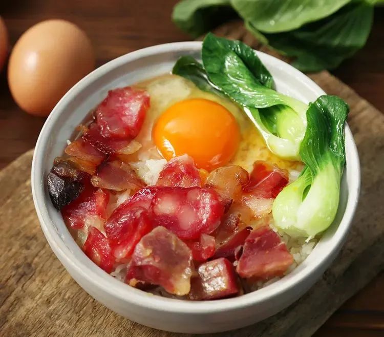 腌制妥当的腊肉腊肠,丝滑饱满的白米饭,混上鲜甜的酱油,色泽明亮,油香四溢。