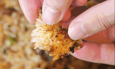 一口下去,美味在嘴里热腾腾绽放,米饭焦香、粒粒有嚼劲,饭汁咸鲜入味!