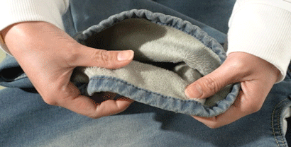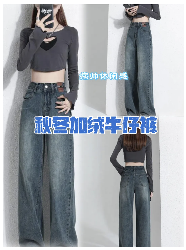 Ta还贴心做了加绒款,加绒款肉眼可见的比一般牛仔裤更厚实、保暖。