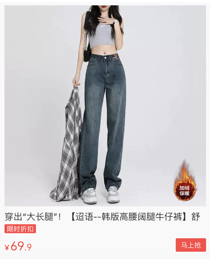 懂行的姐妹应该都知道,一条版型好的牛仔裤价格并不便宜,更别说加绒的: