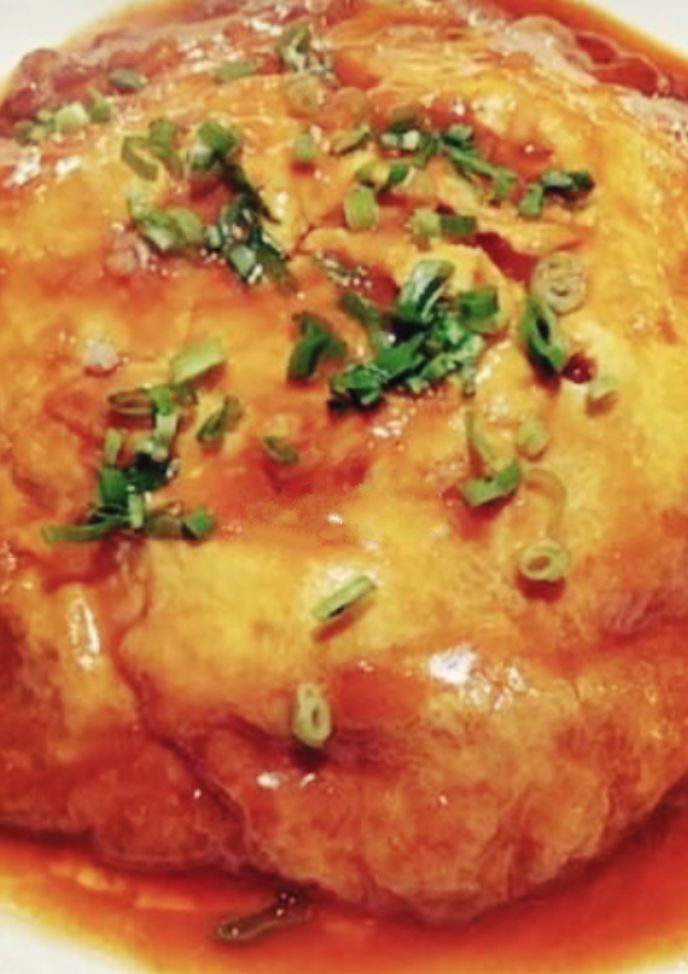 锅塌里脊是天津小吃,以猪里脊、鸡蛋等为原料制作而成,色泽金黄,味道鲜嫩,咸香适口,光是看着就让人胃口大开!