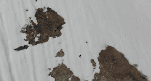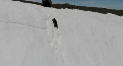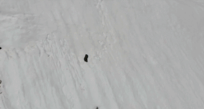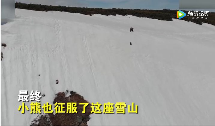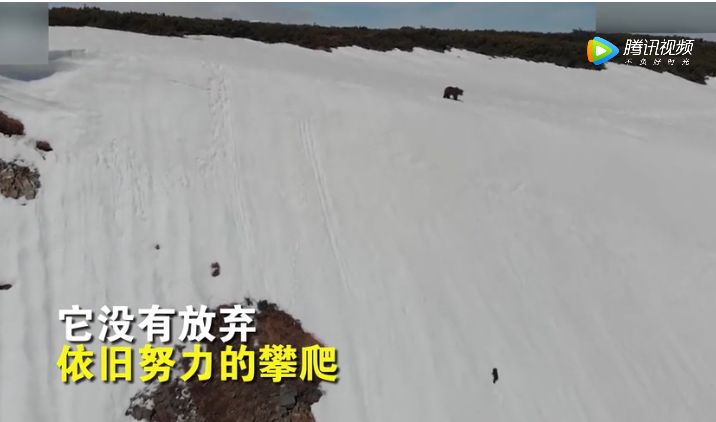 先是熊妈妈,自己快速地往坡度非常大的雪山攀爬。