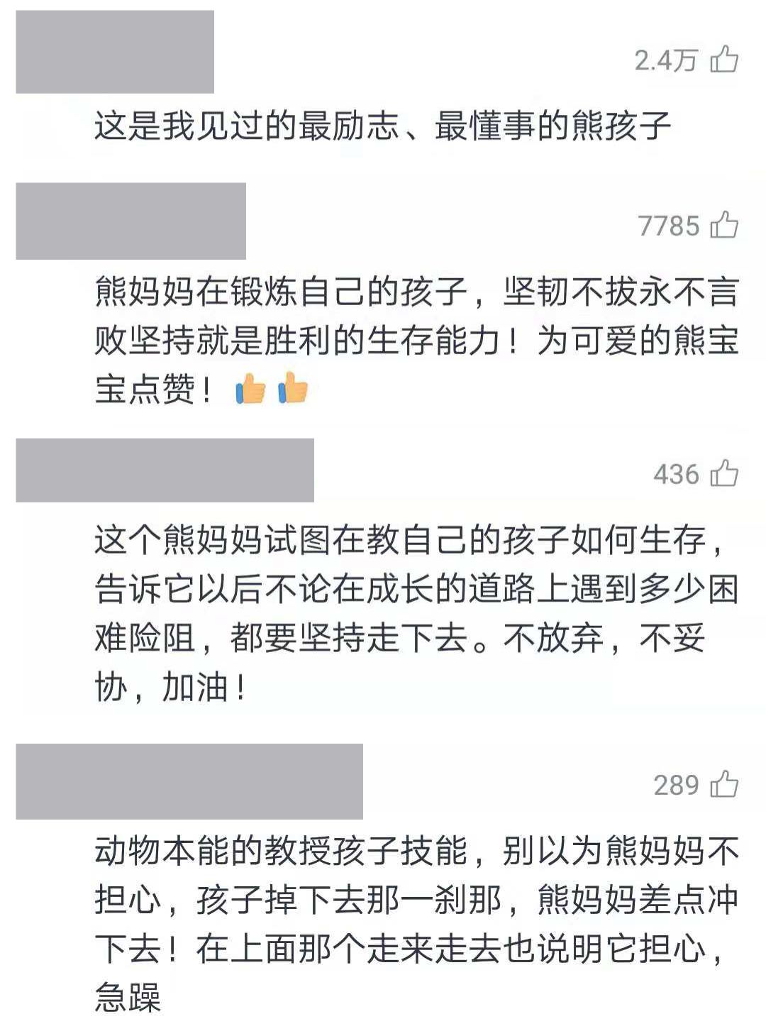 视频看得惊心动魄,围观群众曾一致认为熊宝宝就要这么掉下去没命了。