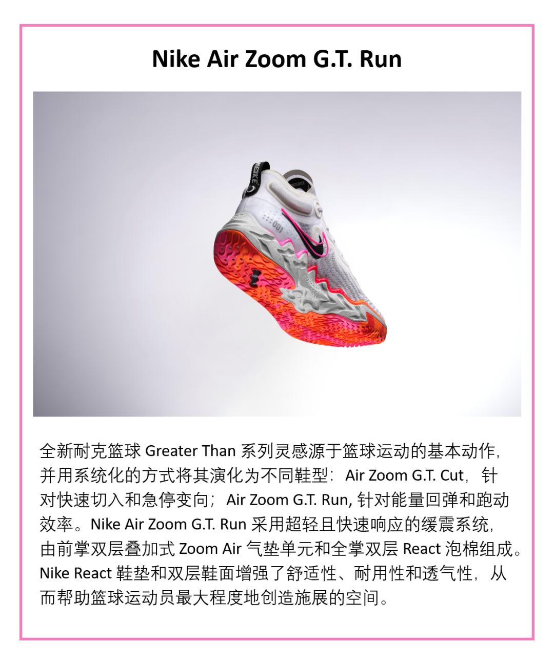 耐克推出 Rawdacious 系列产品迎接夏季体育盛事。该系列以白色为主色调,融合强烈的粉红色调与具有运动感的橙红色调,展现了耐克通过鞋款的色彩设计,注入情感连接,从而缔造文化传承。