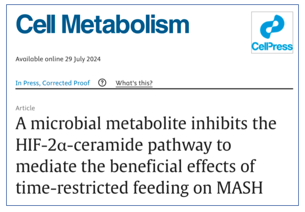 ①A microbial metabolite inhibits the HIF-2α-ceramide pathway to mediate the beneficial effects of time-restricted feeding on MASH.Cell Metabolism.