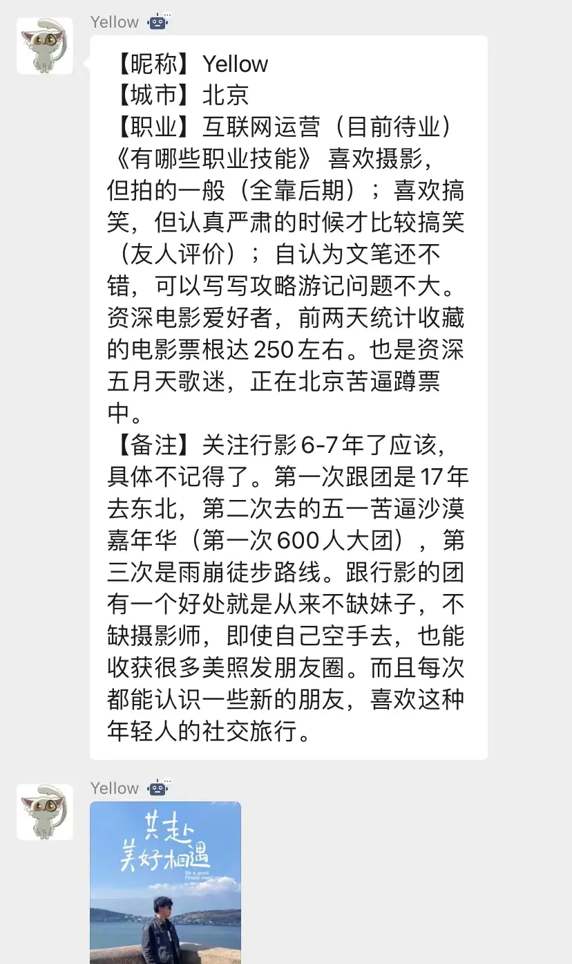 Yellow:在行影每次都能遇到新朋友,喜欢年轻人的社交旅行
