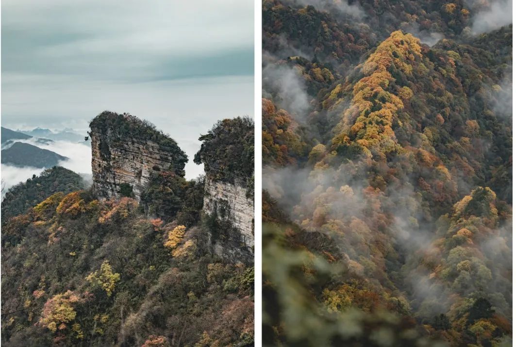 1、天然画廊:主要是巴山水青冈树,五彩斑斓的彩林呈现在你面前,仿佛进入了一个童话世界,如梦如幻,令人沉醉而遐思,多少游人为之惊叹、折服而无语。