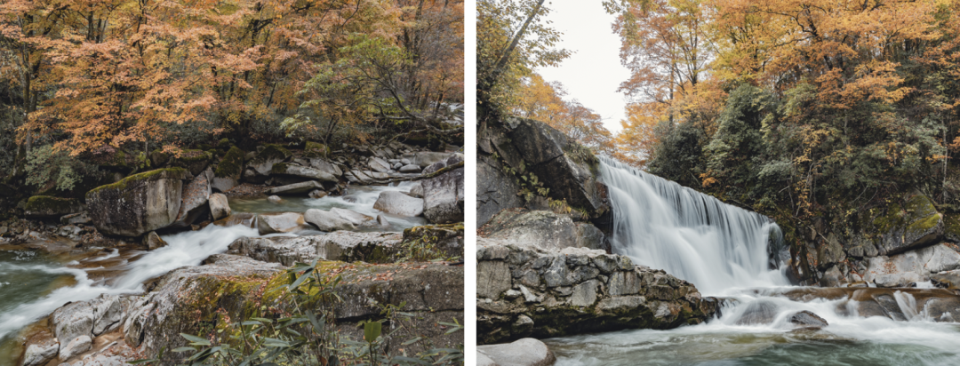 3、大小兰沟:蜿蜒曲折的清溪洗浴着日日相守的青石,红叶倾洒于溪水中随波逐流。毛茸茸的板栗和不知名的野果散落一地,衬得分外宁静悠然