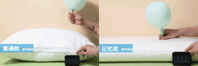 计时器到12秒时,只有记忆枕的气球泄气了,透气性遥遥领先!