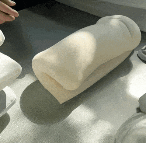 给大家看一下这款记忆枕的慢回弹效果,将枕芯用力卷起来随后放开,5秒后才会恢复原状,缓冲效果特别好!