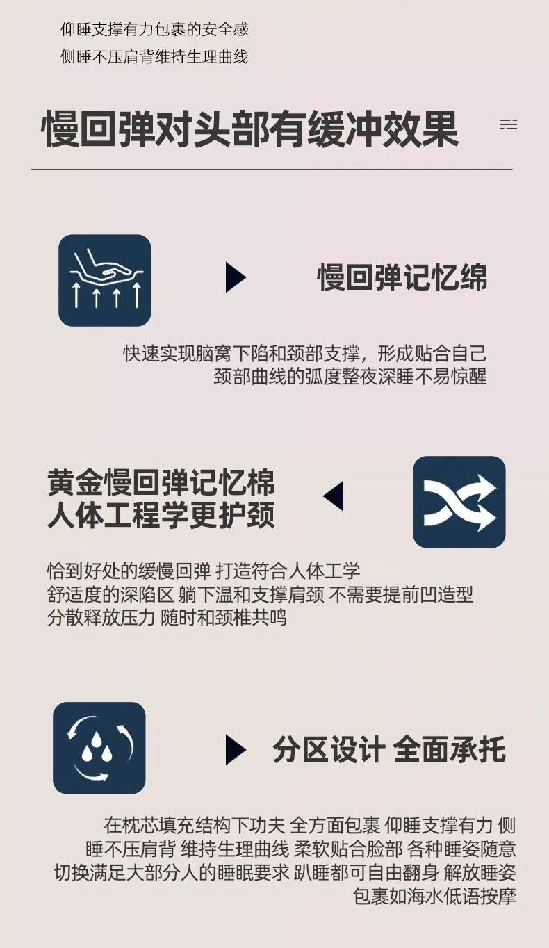 我特别喜欢它5秒慢回弹的功能,在受压后不会立即恢复原状,而是缓慢地恢复,贴合头部和颈部的弧度曲线,整夜深睡不易惊醒。
