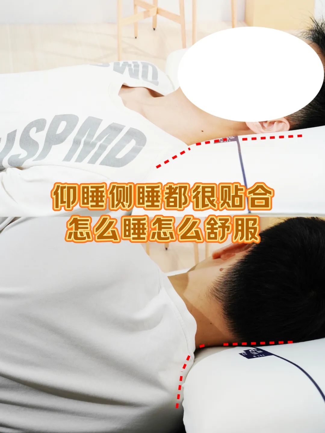 不管是仰睡还是侧睡,整个枕头和头部颈部都是完全贴合的状态,可以很好的支撑头颈。
