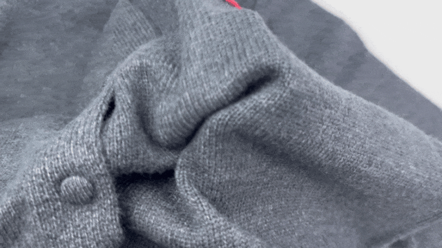 高织混纺的面料不像纯羊毛或是羊绒那样“金贵”,随意的揉搓、摩擦也不易勾线。