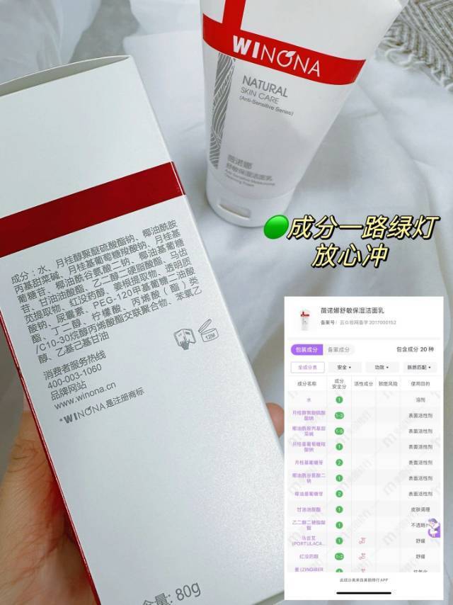 当然,说到敏感肌最关心的问题,就是成分安全性。这款薇诺娜保湿修护洁面乳可是经过严格测试,无酒精、无色素、不含任何刺激性成分,通过了多项专业评测,是一款绝对可以放心使用的产品。