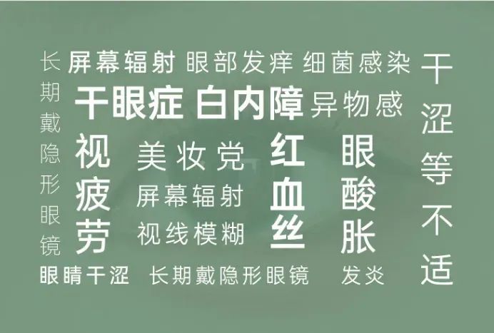 除了不良的用眼习惯,随着年纪的增长眼部也会出现老化,容易眼干眼涩、视力模糊等。同时,还伴随着白内障、老年黄斑变性、青光眼等问题。久而久之,将会对我们的眼睛和视力造成伤害!