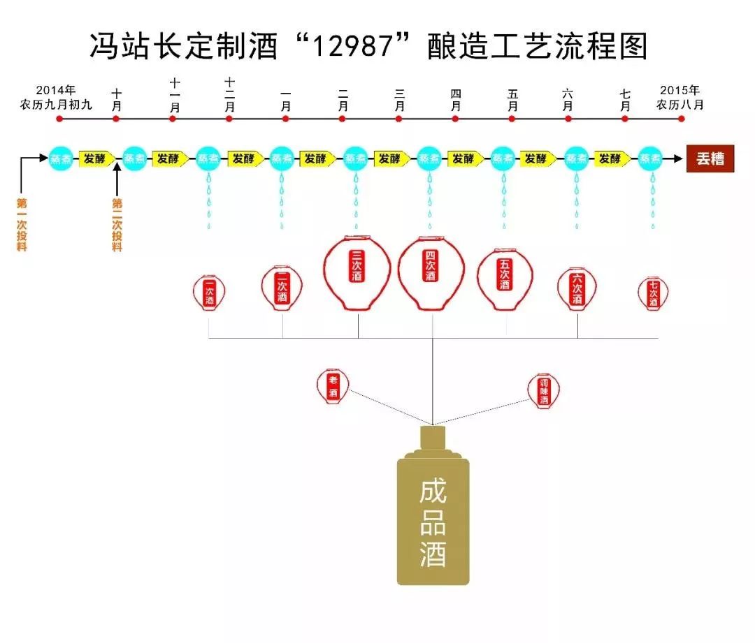 冯站长做酒亦如此,匠心不改,五年沉淀,得来一瓶好酒。冯站长定制酒是正宗的大曲捆沙酱香型白酒,从第一次投料到第二年八月份丢糟,需经过2次投料、9次蒸煮、8次发酵、7次取酒,是中国白酒行业较为复杂的制酒工艺。