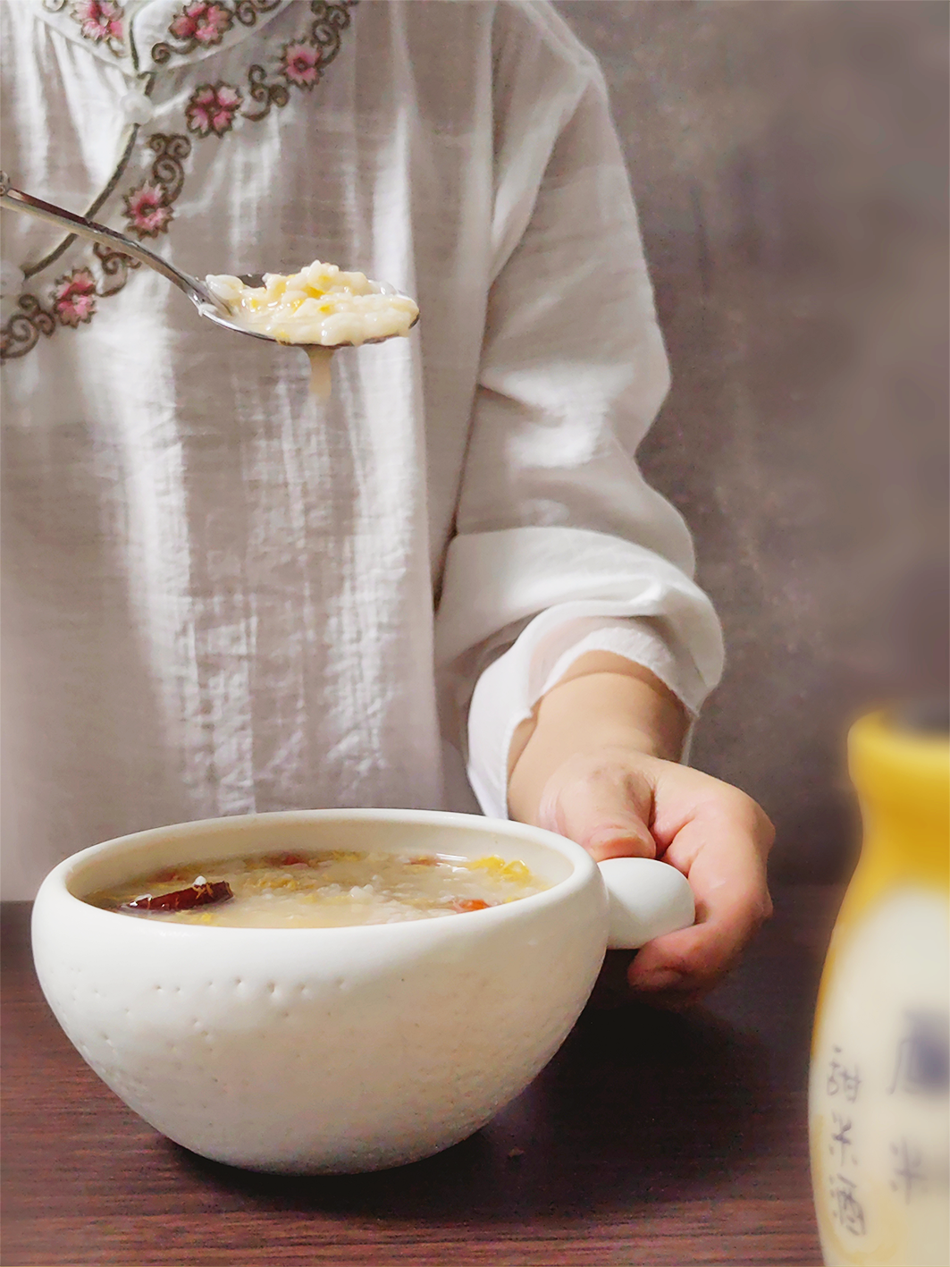 转折发生在2019年冬天。那天刚好碰上经期,忍痛上班的我迎来了好友罗小美姐姐的到访——以及她刚酿好的醪糟。盛情难却之下,用开水冲了一杯醪糟。大概半个小时到一小时,有一种缓缓的热能进入身体,排经量变大了很多,以血块为主,疼痛也减轻了很多。