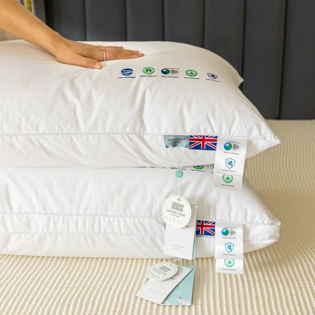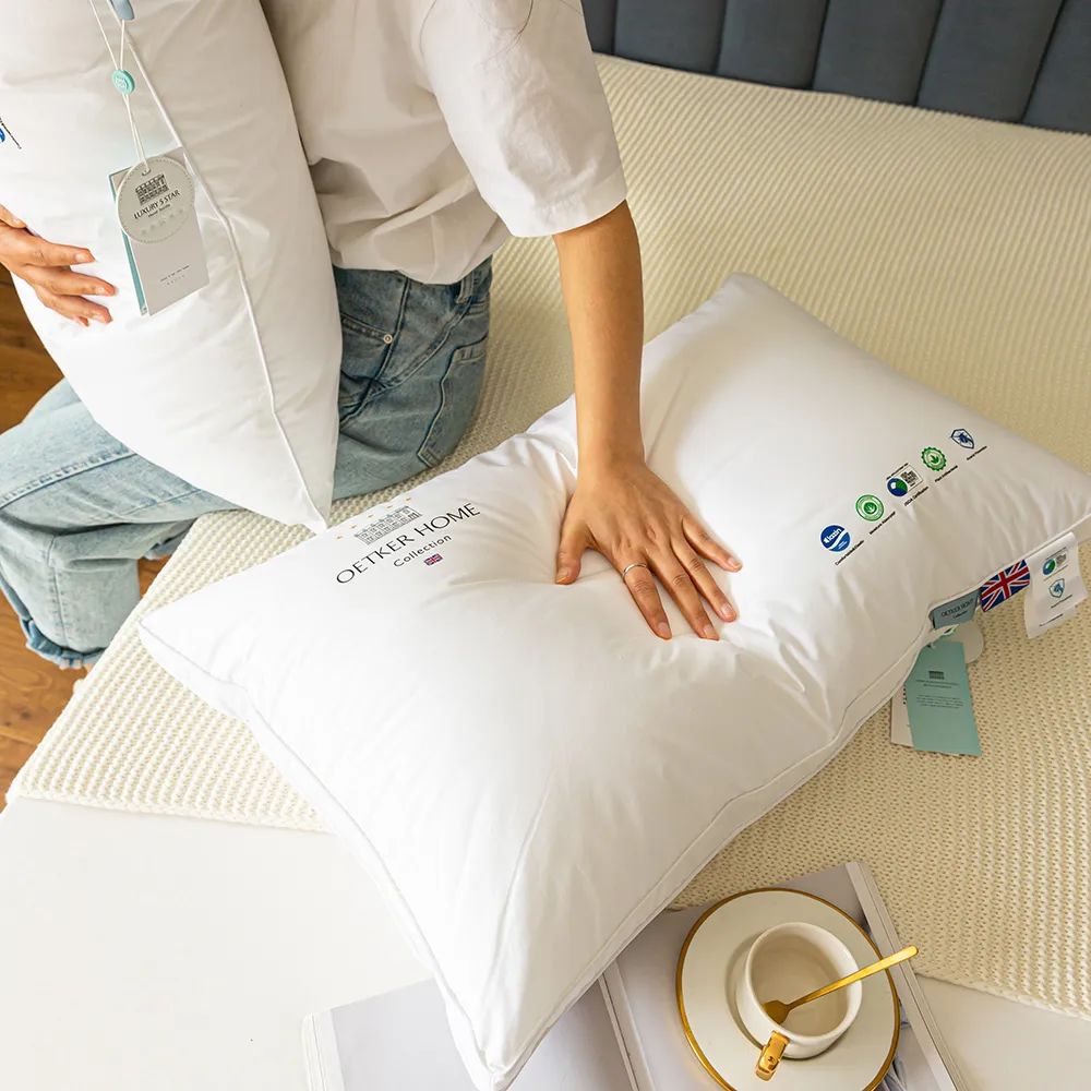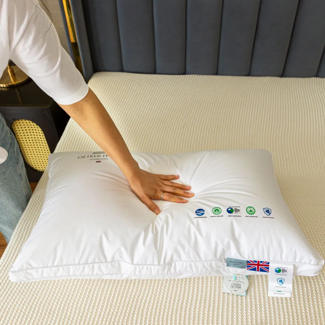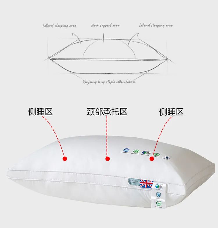 1、欧洲七星级酒店同款,蓬松度高,超柔回弹,贴合颈椎曲线,怎么睡都舒服。