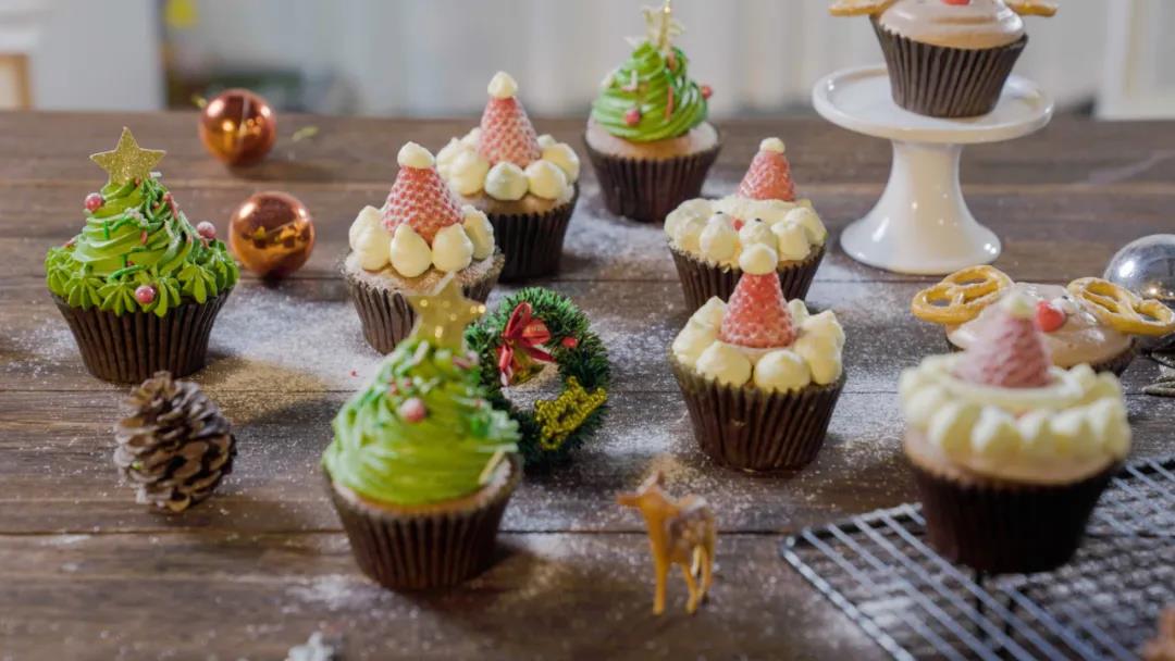 如果说没有那么多时间和精力去准备圣诞餐,又想凑凑圣诞的热闹,那么做一些好看又容易上手的圣诞杯子蛋糕也是一个不错的选择。
