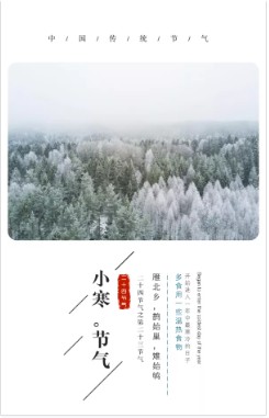 节日简介:小寒,是二十四节气中的第23个节气,也是冬季的第5个节气,小寒是气温最低的节气,标志着季冬时节的正式开始。